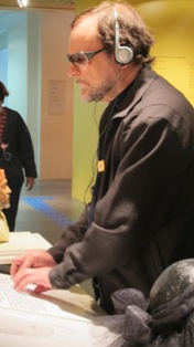 Textos de mediação em dupla leitura (letras ampliadas e Braille) e Audiodescrição mediadora